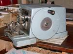 l’autre bout se trouve une vis micrométrique qui va actionner un piston faisant monter l’objet à couper