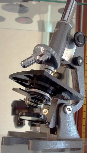 Vue d'ensemble d'un microscope monoculaire, datant de 1966 : mon premier microscope...